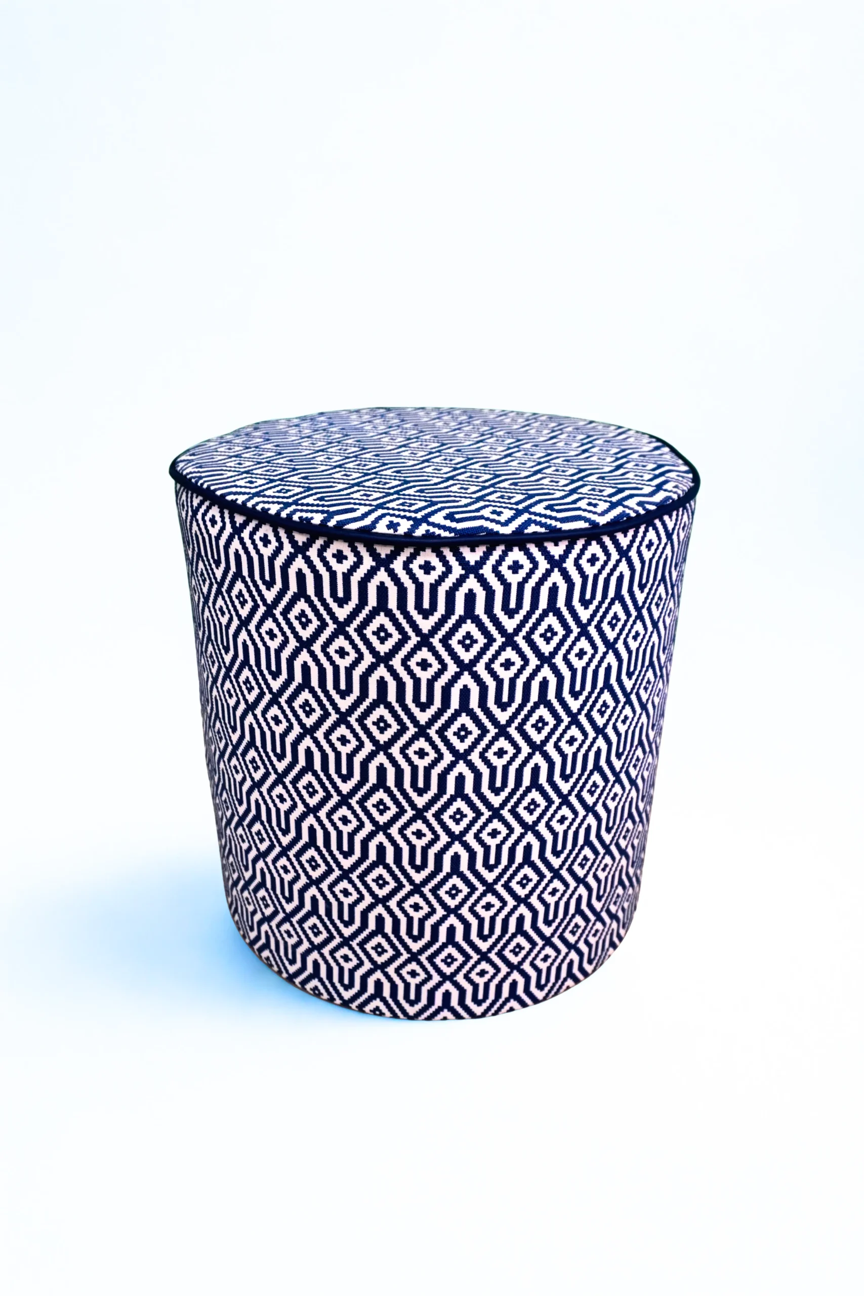 Puf cilíndrico rígido con estructura PoliCore Blanco, base de madera y asiento de gomaespuma de alta densidad. Precio de salida en tejido Jover a un precio muy rebajado para la calidad del producto.