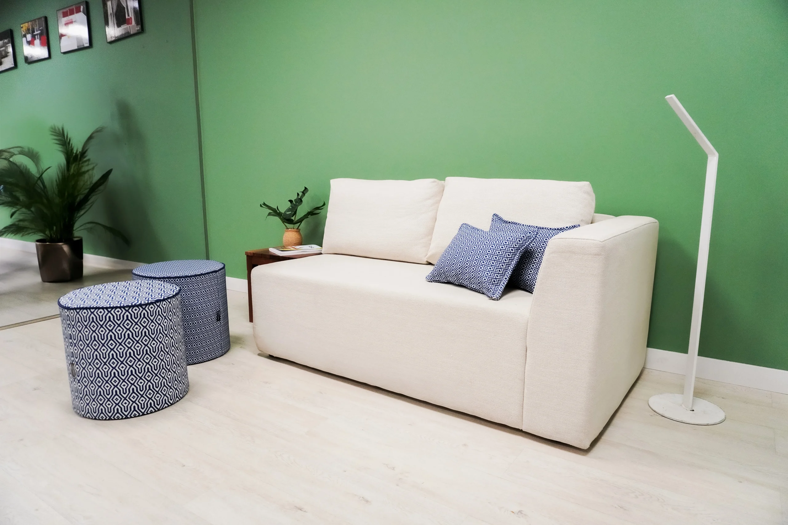 La estructura interna de cada puf está fabricada en PoliCore Blanco, base de madera y asiento en gomaespuma de alta densidad. Gracias a este núcleo técnico, los pufs mantienen su forma perfectamente y soportan el uso diario sin deformaciones.
